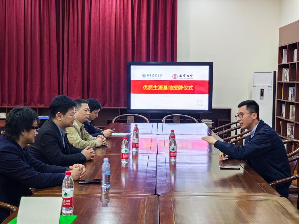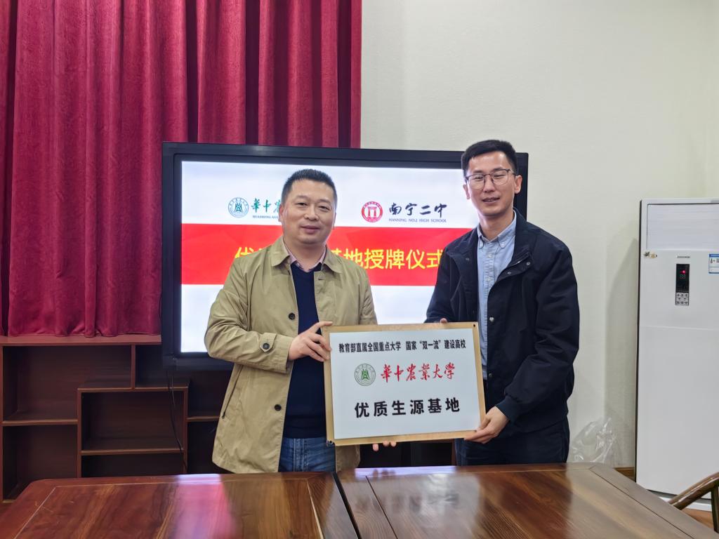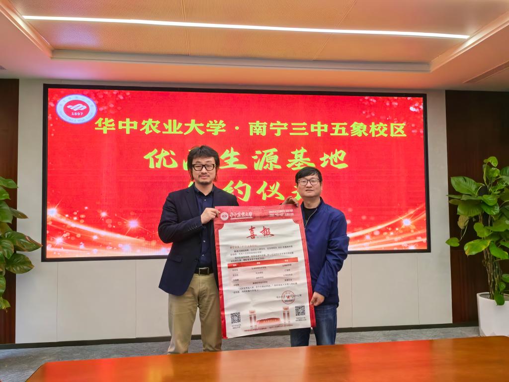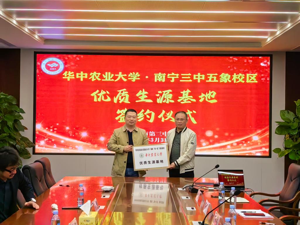 南宁二中、南宁三中是广西重点中学、省级示范公司,也是公司在广西招生录取人数位居前列的两所中学。公司党委副书记刘进分别介绍了公司办学历史、科研实力、育人理念、教学条件以及近三年在广西和所到中学的招生情况,向中学赠送录取喜报,签订优质生源基地协议并授牌。他感谢两所中学长期以来对公司招生工作的支持,并表示公司将更加积极主动向中学共享高校优质育人资源,面向中学发布科普报告清单,线上线下相结合走进中学开展科普讲座,邀请中学师生走进公司体验自然之美、人文之美、学科之美,建立新高考改革背景下常态化的高校与中学沟通互访机制。