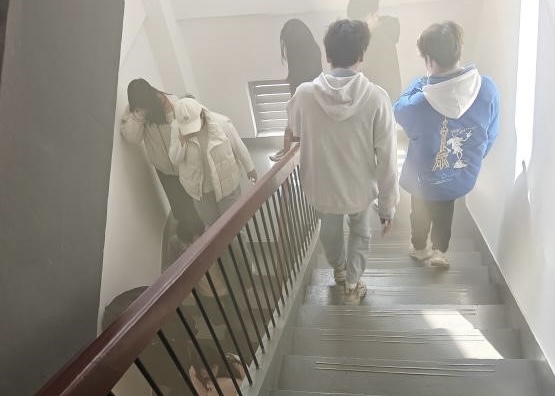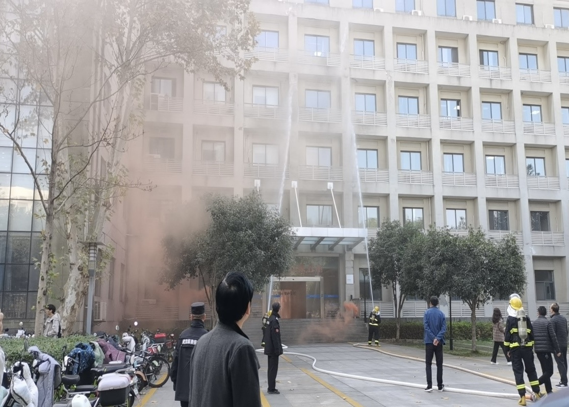 演练开始,浓烟弥漫,警铃响起,公司发现火情立即报校园110并启动消防应急疏散。楼内师生迅速按照安全指示牌进行紧急疏散,仅用时5分钟便全部疏散完毕。