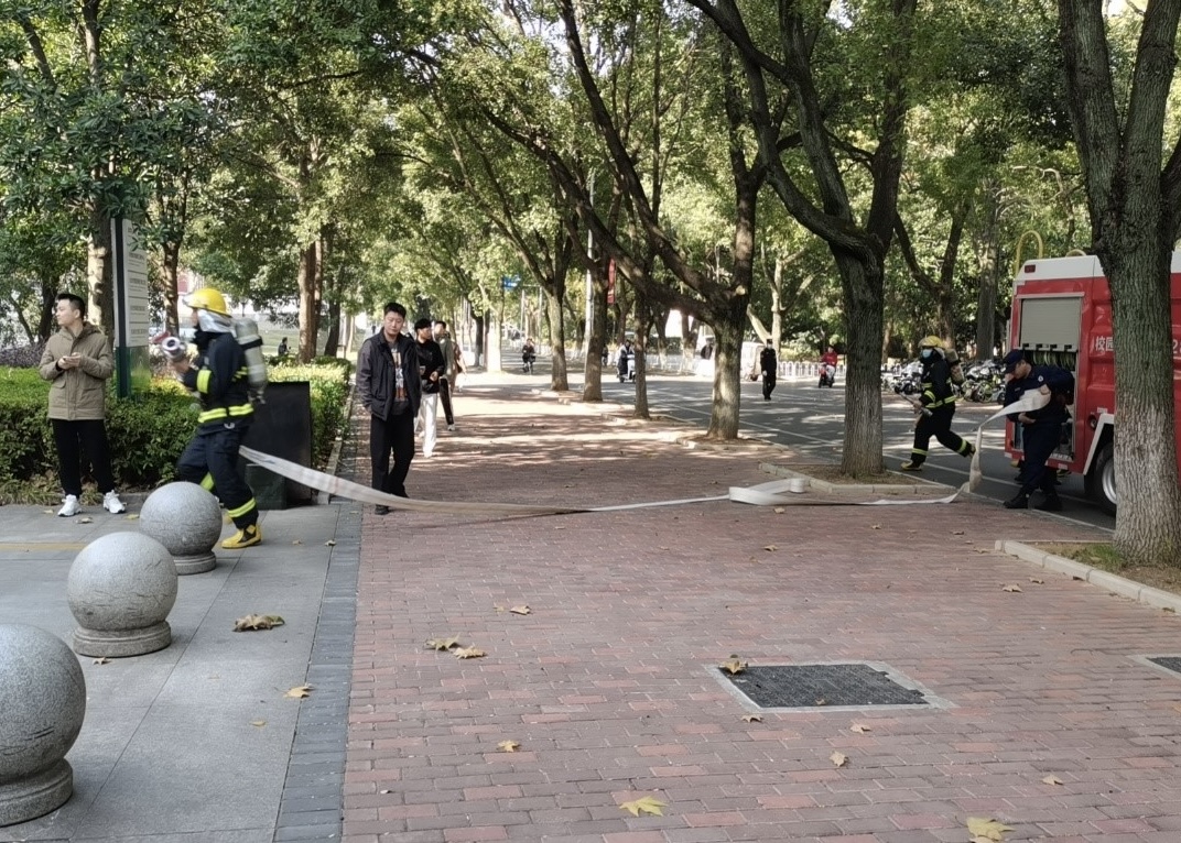 消防车迅速赶到并开展灭火救援,对着火点快速灭火,保障了各位师生的人身安全。