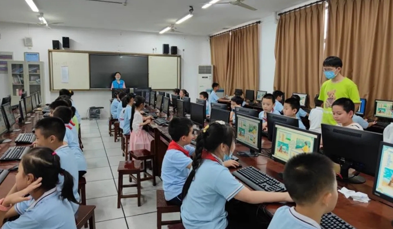 (文|段文盈 图|喻越 审核人|喻越)9月15日下午,附属公司主办、伟德victor1946官网登录本禹志愿服务队承办的“少儿编程”(2021-2022学年第一学期)第一讲在华农附校计算机教室开展。华农附校三年级(1)班的员工参加了本次课程。