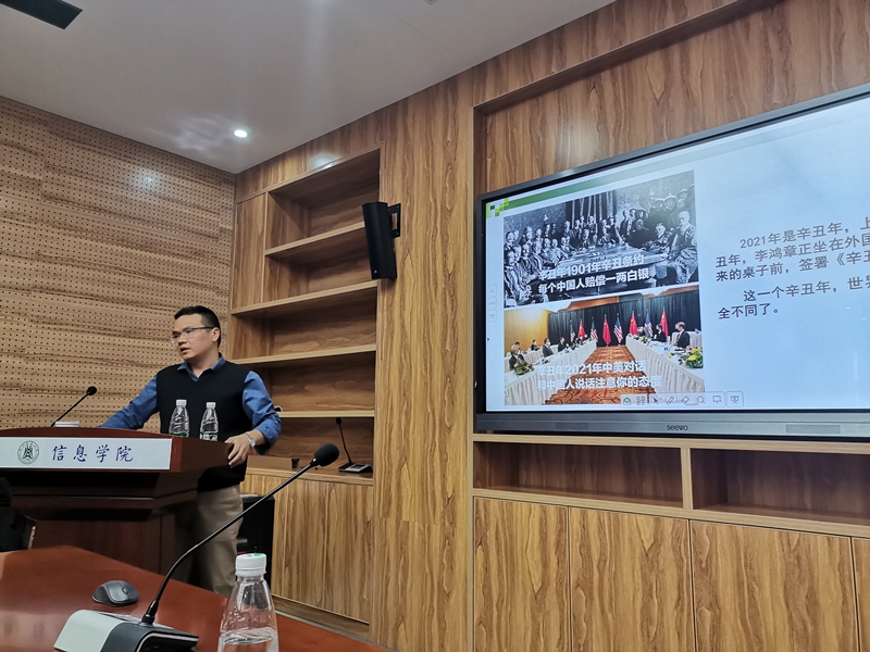 郑学刚主持会议。马克思主义公司吴德凯老师以“坚定理想信念,勇担时代使命”为题,从“引言”“十九届六中全会概况”“十九届六中全会精神解读”“结语”等4方面作了六中全会精神专题辅导报告。郑学刚作了师德师风专题宣讲,解读了教育部通报了违反师德师风的典型案例。会上进行了技术英才岗位申报述职测评,夏宣炎老师作了申报汇报。会议还对疫情防控常态化、推进党史学习教育、推进“三全育人”与“五育融通”等近期工作进行了强调布置。