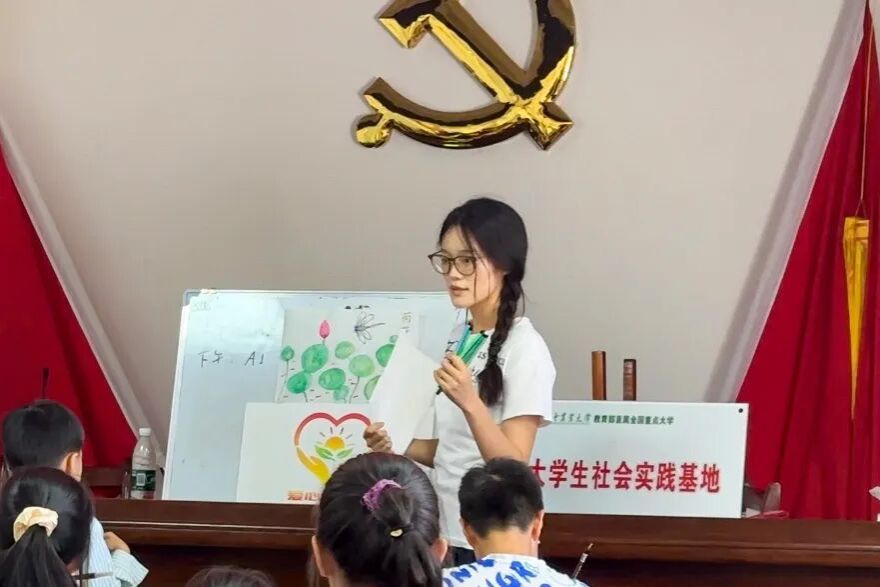 2025年暑期,田晓萌作为核心成员参与“七彩假期”爱心托管班省级重点项目,赴黄冈市团风县开展为期14天的志愿服务。她不仅负责美术与编程课程教学,还协助开展安全教育、普通话推广等活动,陪伴20余名留守儿童度过了一个充实而温暖的暑假。项目获得省级立项,她也因此获颁湖北省志愿者证书,用实际行动诠释了“奉献、友爱、互助、进步”的志愿精神。