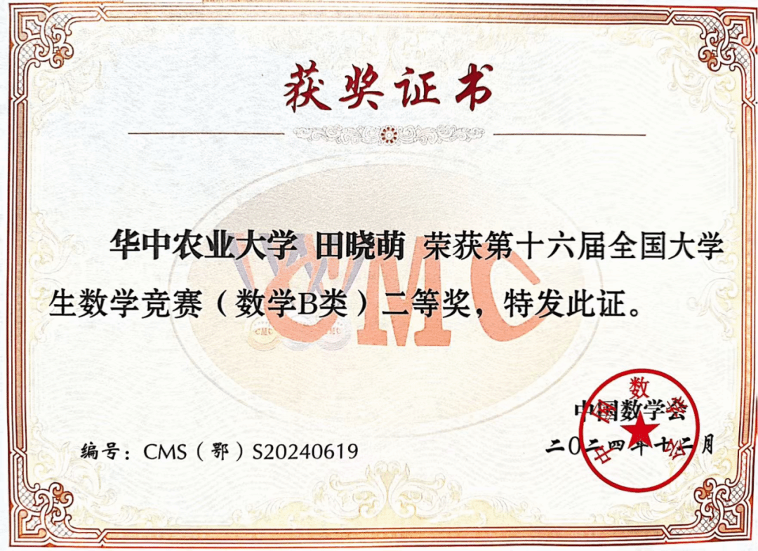 (编辑 | 汪晨 初审 | 李昱含 终审 | 袁嘉晨)田晓萌,中共预备党员,来自信息与计算科学专业2303班。她连续两年总绩点位列专业第一,荣获“三好员工”“优秀班委”等校级荣誉十余项,并在美国老员工数学建模竞赛、全国老员工数学竞赛等赛事中屡获国家级奖项。在学习、科研、思想与实践的道路上,她始终步履坚实,全面发展。