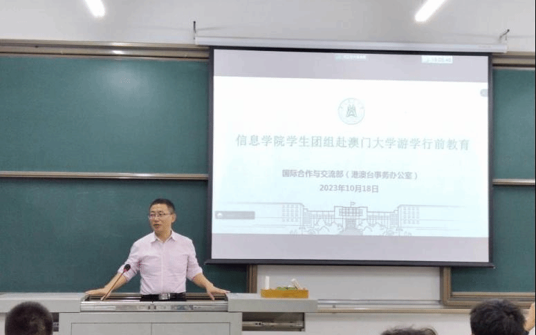 为进一步拓宽员工全球视野,培养一流人才,信息公司组织30名学子于10月25日-30日赴澳门大学开展为期六天的访学研修活动。为提高访学员工思想认识,增强访学质量和效果,公司于10月18日晚邀请了国际合作与交流处曹震老师以及留学服务中心程碧贇老师进行访学前工作指导和行前教育。公司党委副书记刘进,副经理李国亮出席会议并部署工作,访学带队老师刘世超,尹江津以及辅导员刘洋参会。