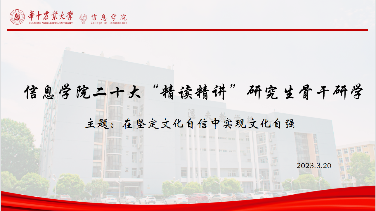 近日,伟德victor1946官网登录在逸夫楼C603开展了党的二十大精神“精读精讲”专题学习,邀请马克思主义公司唐尚书老师作“在坚定文化自信中实现文化自强”的专题报告。公司研究生员工骨干、研究生党支部支委、发展对象和入党积极分子等60余人参加学习,会议由研究生辅导员苗壮主持。