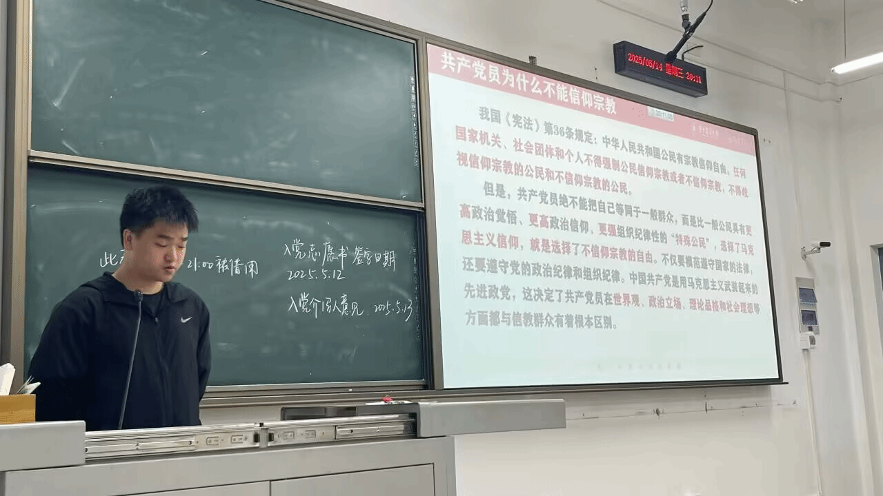2025年5月14日,信息第一党支部于四教A204召开“强信仰、严作风、践初心”主题党日活动,深入学习习近平总书记关于共产党员不能信仰宗教的重要指示精神、给新疆谢依特小学戍边支教西部计划志愿者服务队队员的回信精神,以及中央八项规定要求。会议强调,共产党员必须坚定成为马克思主义无神论者,严格遵守党章规定,杜绝在宗教中寻求价值与信念。党员们表示,将筑牢信仰根基,严守学术规范,将回信精神切实转化为服务社会的实际行动,在全面建设中国式现代化新征程中贡献青春力量。