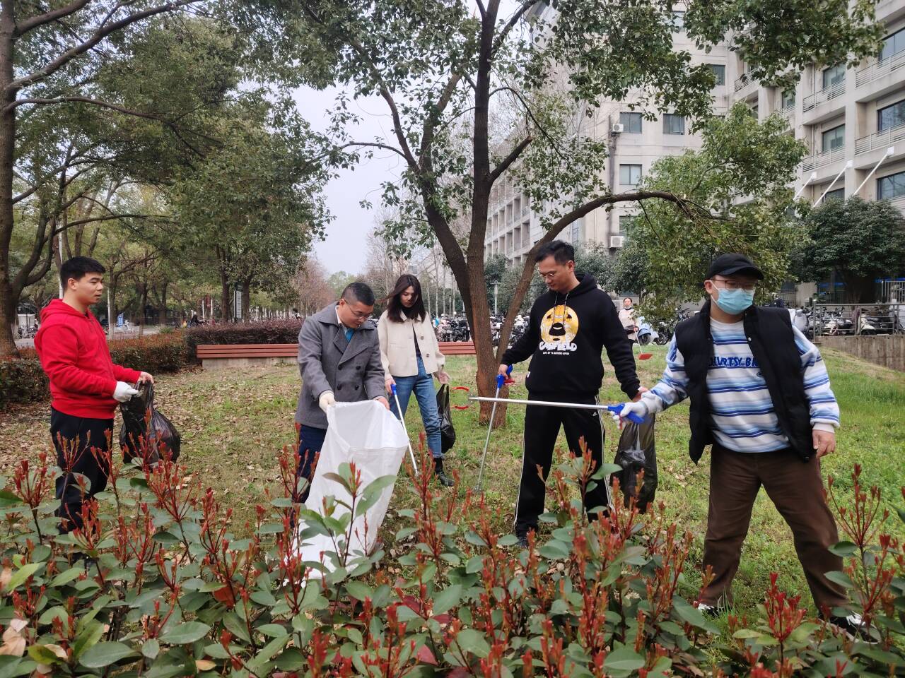3月15日下午,在公司党政领导郑学刚、徐勋光老师的带领下,公司行政管理服务系列、实验教学中心人员、辅导员、青年志愿者代表在责任区开展了环境卫生清理打扫。