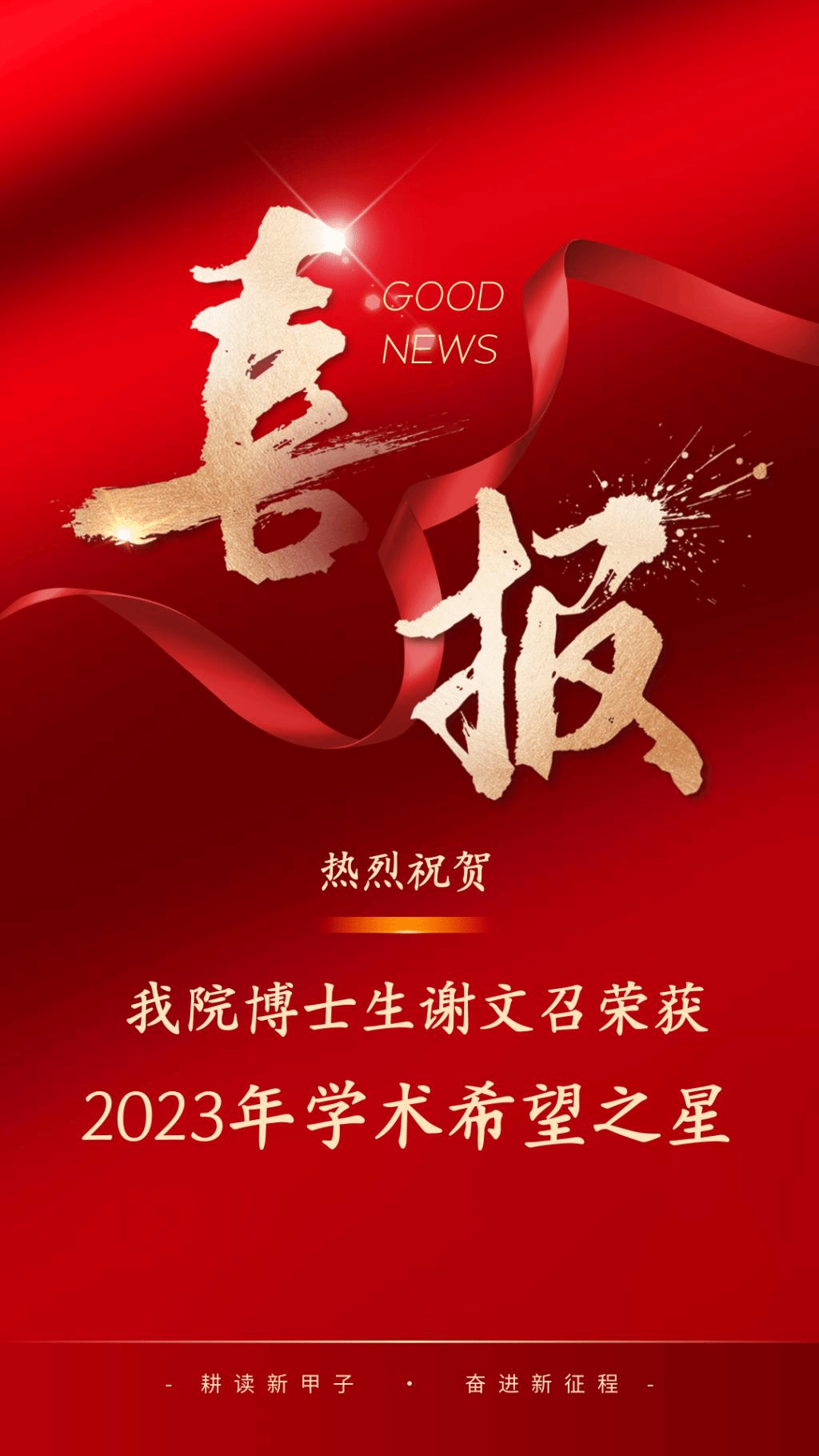图1 喜报—公司博士生谢文召同学荣获公司2023年“学术希望之星”称号