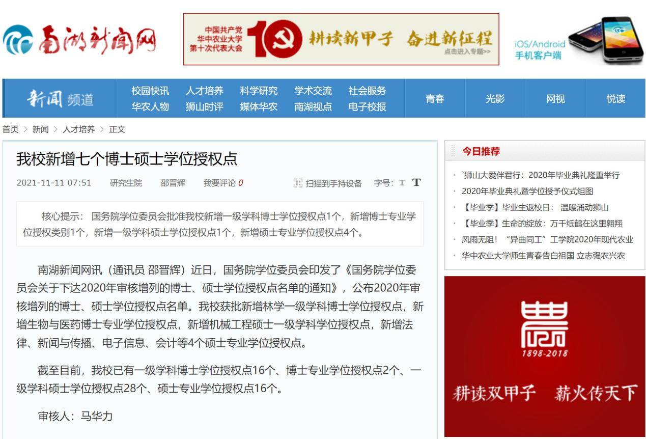 10月26日,国务院学位委员会印发了《国务院学位委员会关于下达2020年审核增列的博士、硕士学位授权点名单的通知》,公布2020年审核增列的博士、硕士学位授权点名单。公司申办的电子信息硕士专业学位授权点获批: