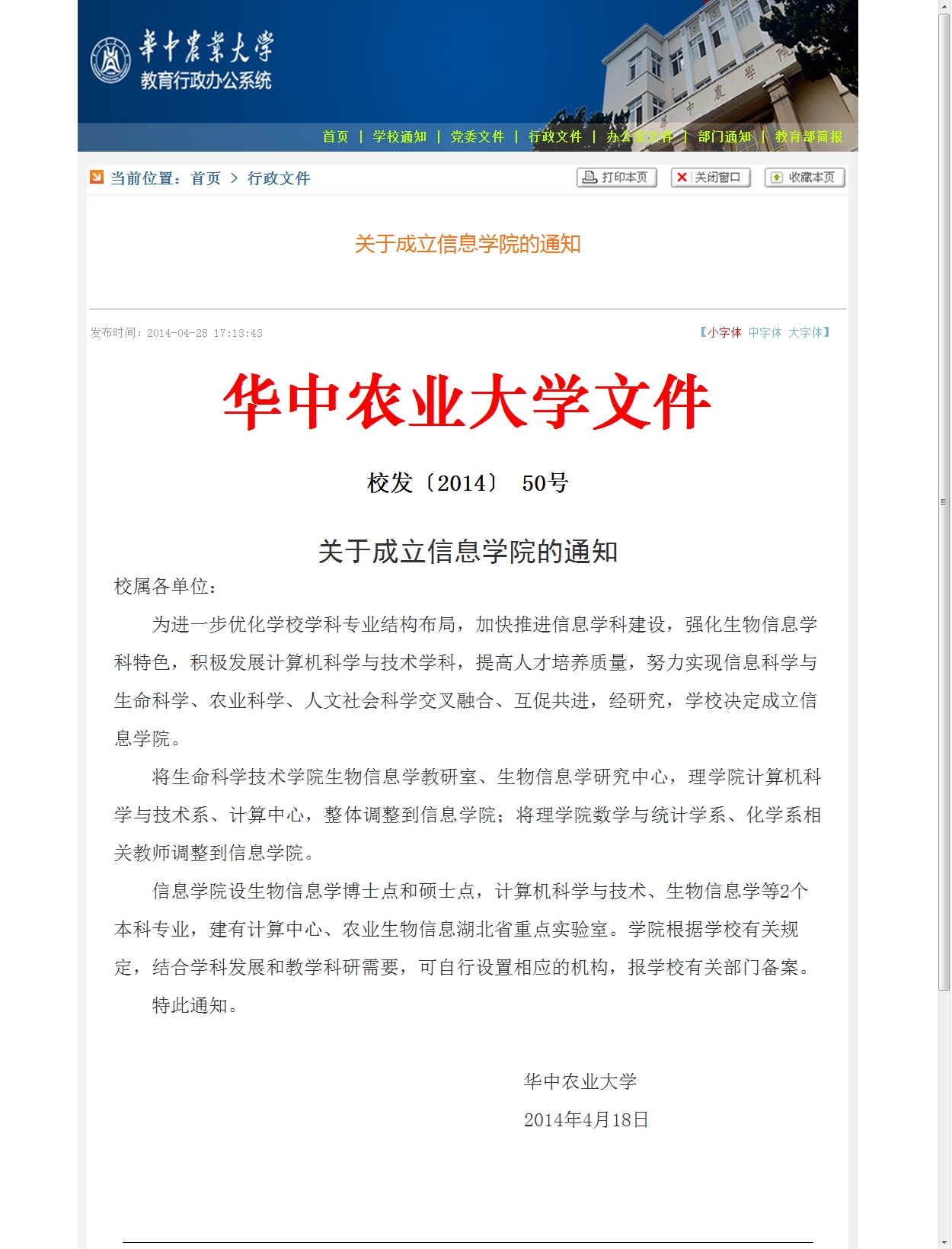 12月24日,华中农业科教基金会公布了2017年全国高等农业院校优秀教材资助项目名单和优秀教材建设管理者评选结果,公司教师主编的《大学计算机基础(第三版)》 名列其中,获评2017年农业部优秀教材,主编为:魏中海、彭辉、章程。