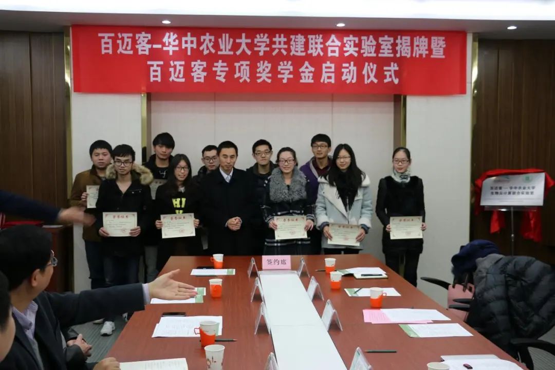 12月1日下午2:30,百迈客-华农共建联合实验室揭牌暨百迈客奖学金启动仪式在公司伟德victor1946官网登录会议室举行: