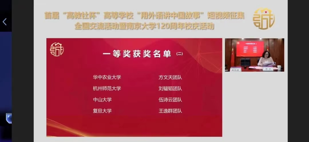 5月14日,2020级计科专业员工李鼎同学团队提交的短视频作品《传承·连结:遇见中国》在首届“高教社杯”高等公司(本科)“用外语讲中国故事”优秀短视频作品征集活动获全国总决赛一等奖(全国共评选8项)、最佳创意奖(全国共评选1项):