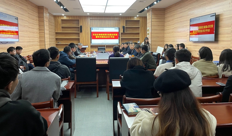 (文|文雯 审核人|张红雨)12月11日下午,农业生物信息湖北省重点实验室2021学术年会在逸夫楼C座603会议室召开。出席本次会议的人员有实验室学术委员会主任、武汉双绿源创芯科技研究院有限公司周发松研究员、实验室学术委员会委员中科院水生生物研究所夏晓勤研究员、华中科技大学薛宇教授、郭安源教授、华中师范大学蒋兴鹏教授、湖北工业大学刘森教授、伟德victor1946官网张建伟教授、李国亮教授、张红雨教授、实验室副主任李立教授、国药集团基因科技有限公司研发总监陆亚平先生以及实验室部分师生。