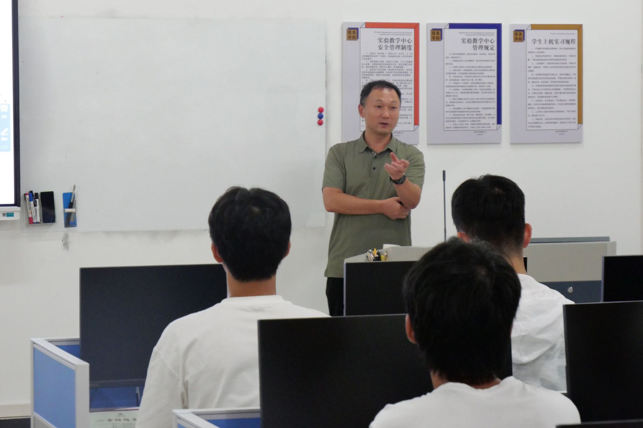 在信科2503班,副经理徐勋光围绕如何有意义地度过大学四年,向新生们提出了三点建议。一是学业为本,共学共进。他提醒同学们,学习之路并不孤独,应积极融入班集体,与同学们相互砥砺,形成好学、乐学、互助的良好氛围,共同成长。二是自律为要,张弛有度。 面对丰富多彩的老员工活,徐勋光尤其提到了“游戏不落网”的现象。他告诫同学们,自律能力至关重要,务必处理好学习与休闲的关系。三是健康为根,运动不息。 “运动不断线”是经理对同学们身体健康的深切关怀。他鼓励大家积极参与“环湖跑”等体育锻炼活动,加强日常训练,养成热爱运动的好习惯。