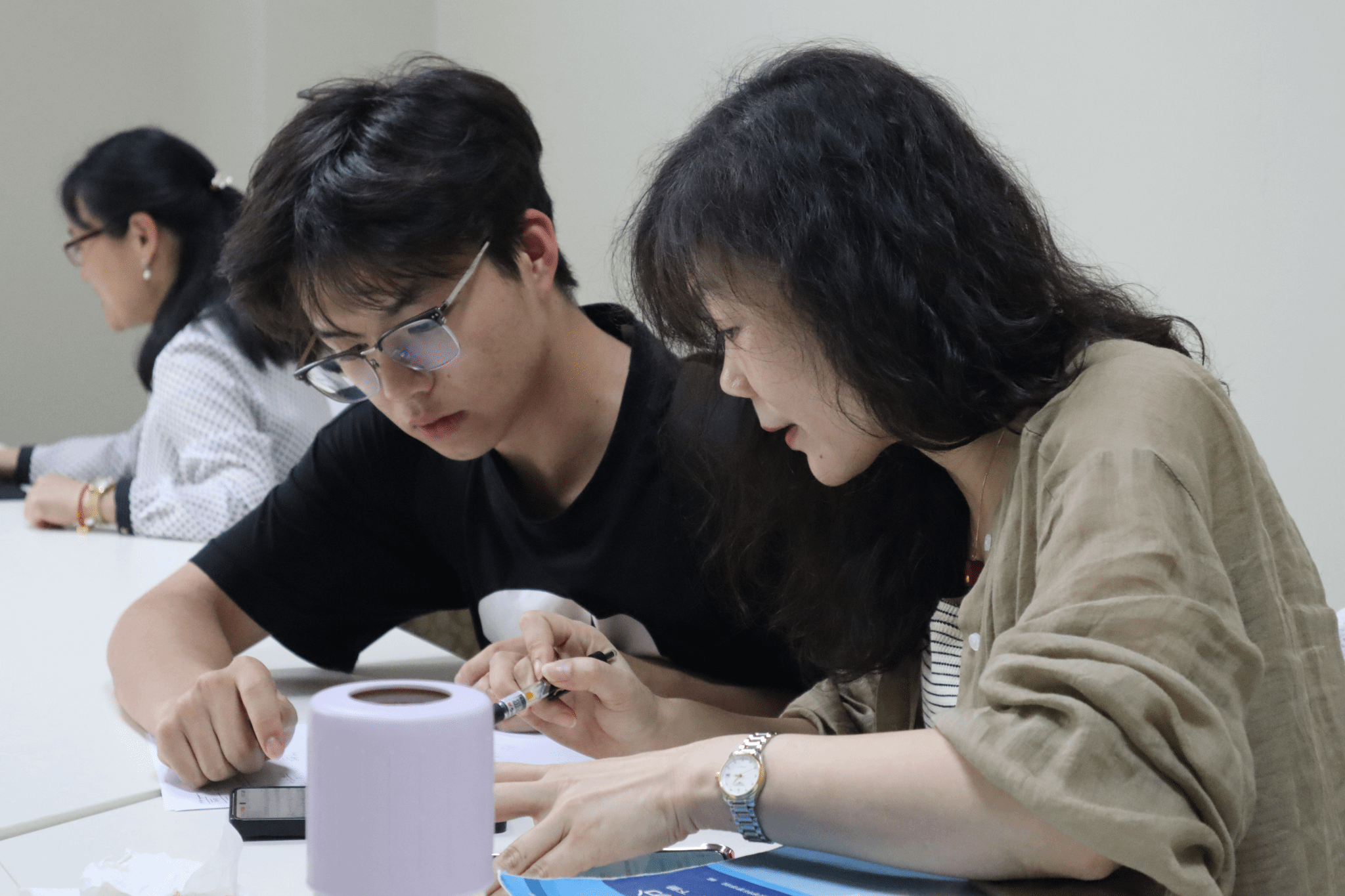 图 7 龙容为员工讲解习题(袁嘉晨 摄)