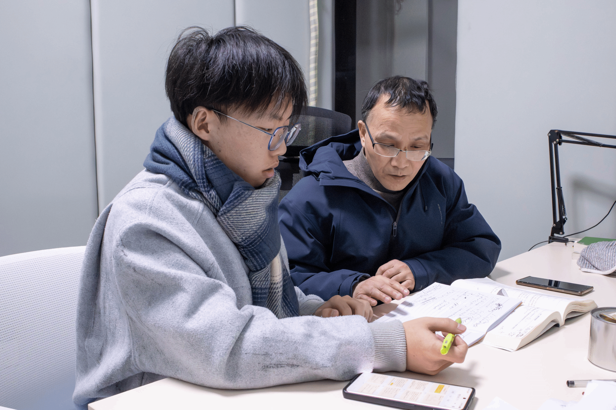 (通讯员 | 朱迅 袁嘉晨 初审 | 袁嘉晨 终审 | 刘进)晚上七点,伟德victor1946官网逸夫楼的走廊逐渐安静,B101和B102“锋哥有约”答疑室的灯光却格外明亮。陈华锋老师身边围拢了几名员工,他手指轻点着稿纸上的数学题,浅显易懂的话语,将艰深的原理一步步还原为最基础的模块。这是“锋哥有约”数学答疑团队一个普通的工作夜晚。这份看似简单的陪伴,已经在校园里持续了整整二十五个春秋。