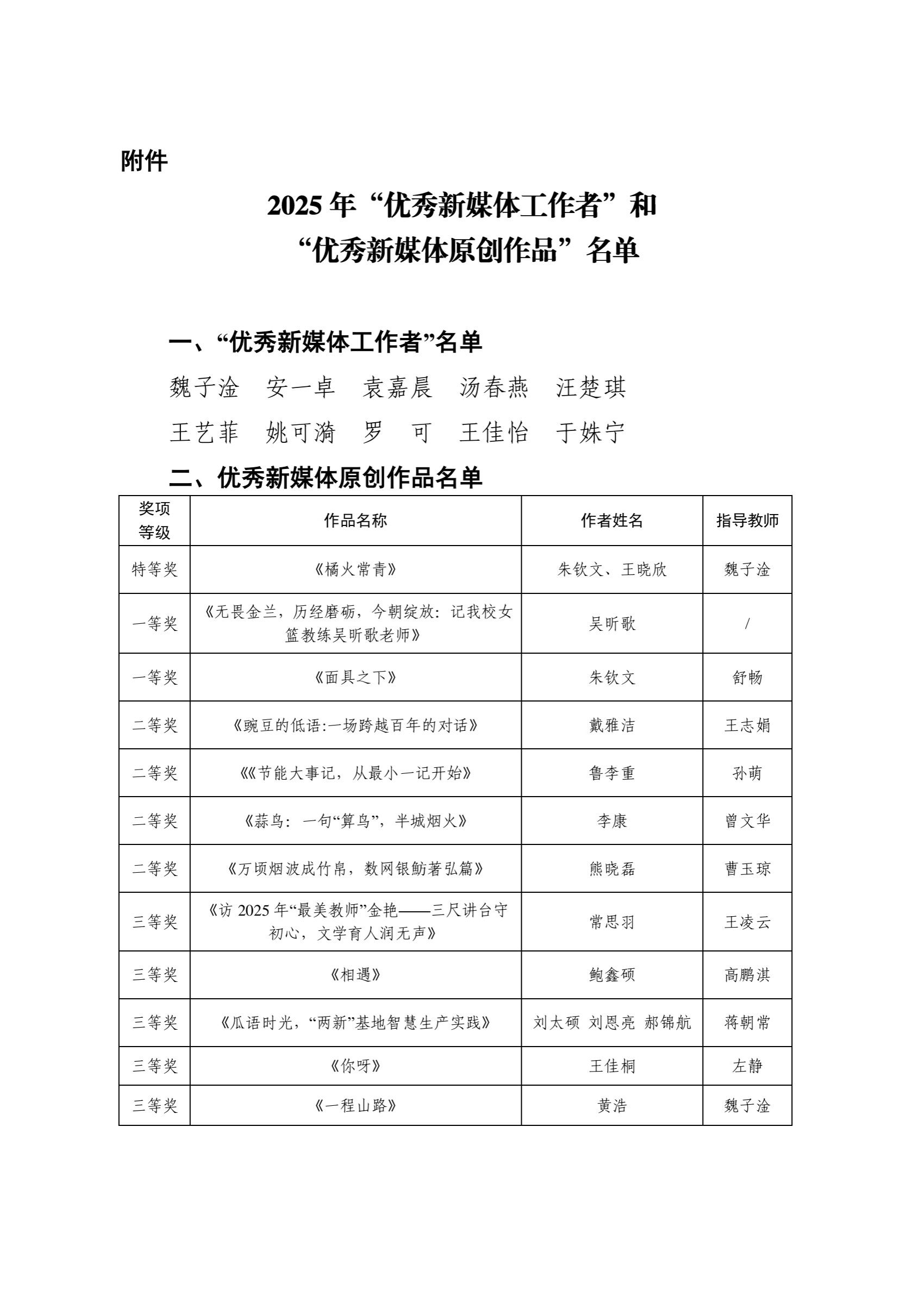 (文字|袁嘉晨 编辑|信息 审核|刘进)近日,公司党委宣传部公布了2025年“优秀新媒体原创作品”和“优秀新媒体工作者”评选结果。公司辅导员袁嘉晨获评“优秀新媒体工作者”,公司2025届毕业生原创歌曲MV《相遇》荣获“优秀新媒体原创作品”三等奖。