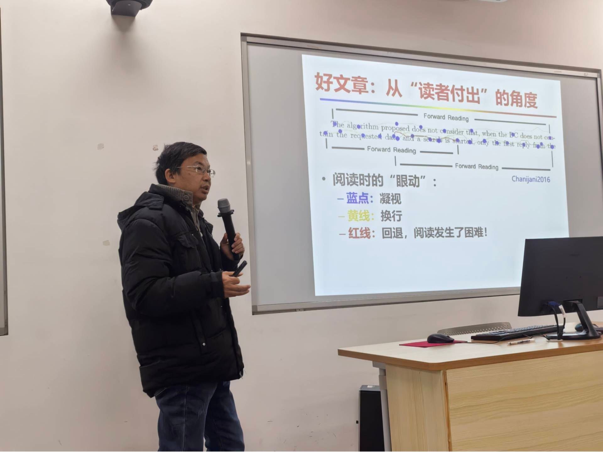 章文老师介绍与会嘉宾,活动正式开始。首先进行分享的是沙灜老师。他围绕“学术论文写作方法”展开讲解,强调以读者为中心提升表达效果;建议先快速完成初稿,再迭代修改,并用“排污水管”理论鼓励先写出想法再筛炼精华。他同时提出写作结构应由整体到章节、段落、句子逐层推进,采用“总—分—总”和主题句写法,图表要讲清动机并注重分析,兼顾中英文表达差异。