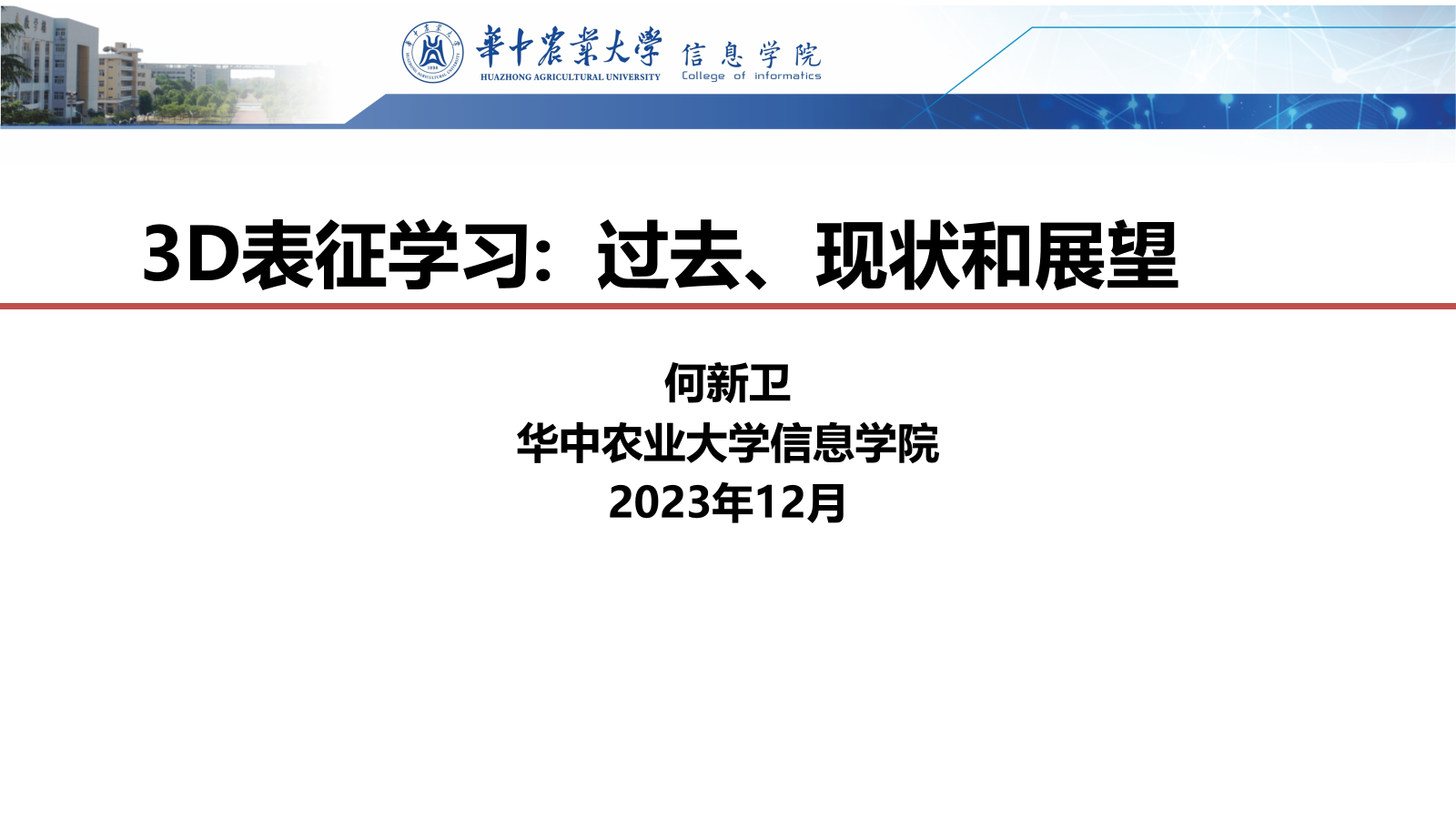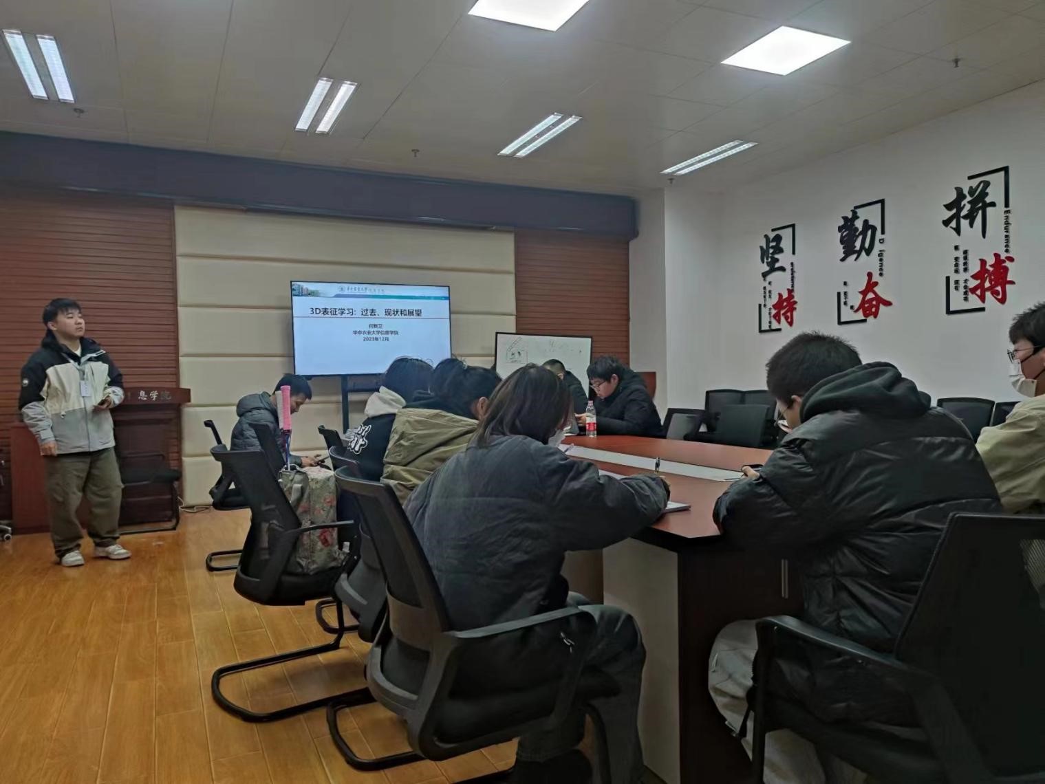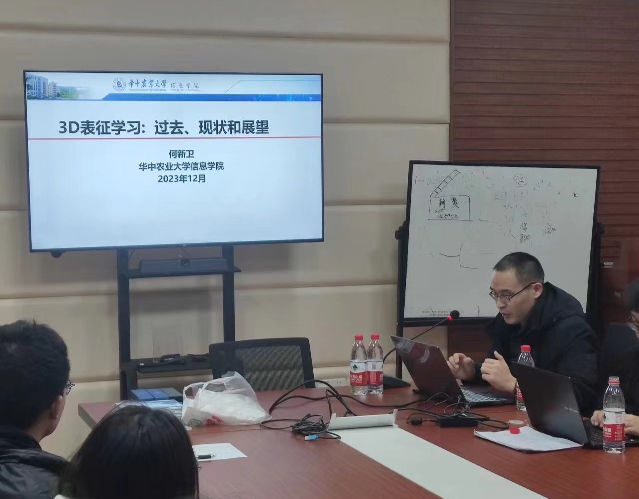2023年12月15日晚,伟德victor1946官网登录学术晚茶系列活动“青椒”请讲第一期于伟德victor1946官网第一综合楼B座113会议室顺利举行,本次活动邀请了伟德victor1946官网登录何新卫老师为大家做主题为《3D表征学习:过去、现状和展望》的学术分享,活动由公司研究生会学科部主办。