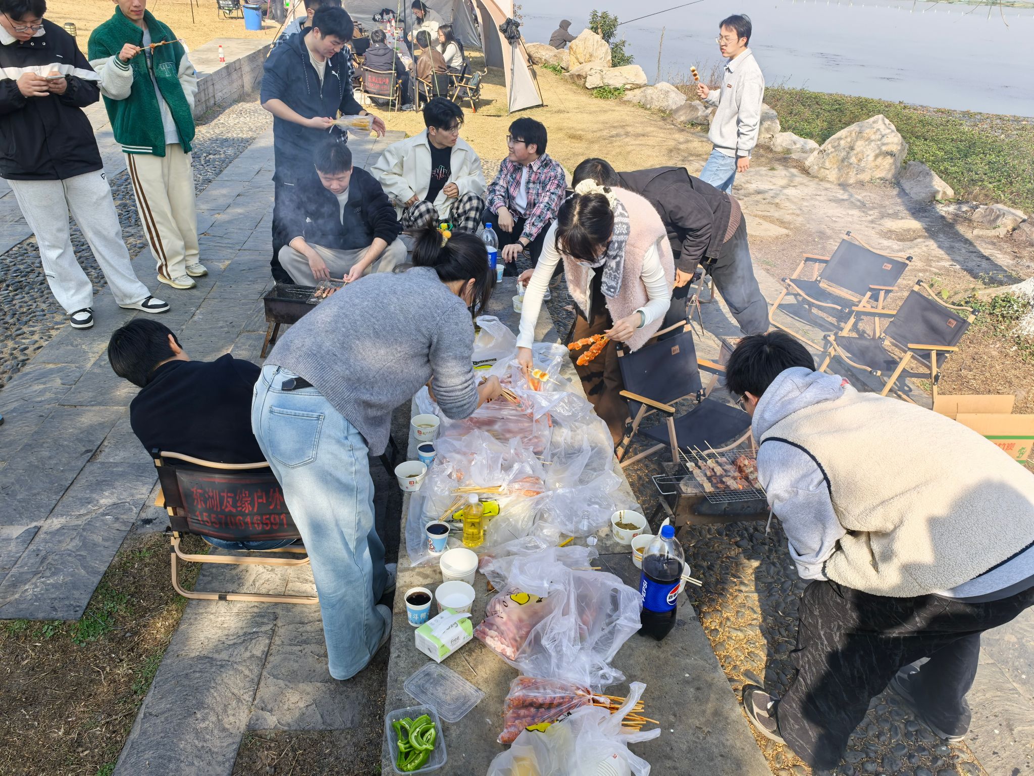 抵达营地后,活动进入了最令人期待的“自助烧烤”环节。炭火升起,炊烟袅袅。平日里往日里敲击代码的双手,此刻化身为灵巧的“烧烤师傅”,翻动着滋滋作响的烤串。 美食的香气在营地弥漫,欢声笑语此起彼伏,现场气氛热烈而温馨。