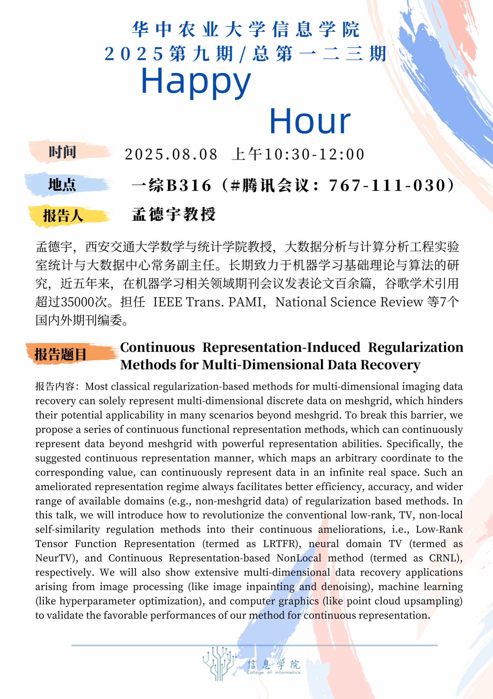 Happy Hour第122期:Continuous Representation-Induced Regularization Methods for Multi-Dimensional Data Recovery