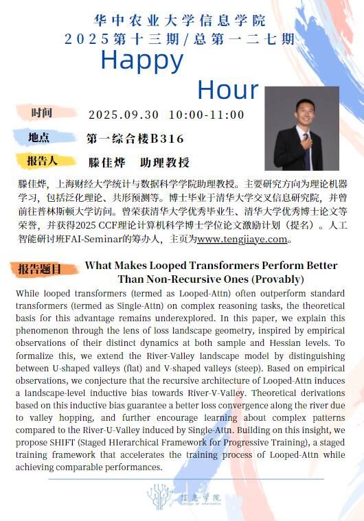 Happy Hour第127期:What Makes Looped Transformers Perform Better Than Non-Recursive Ones(Provably)