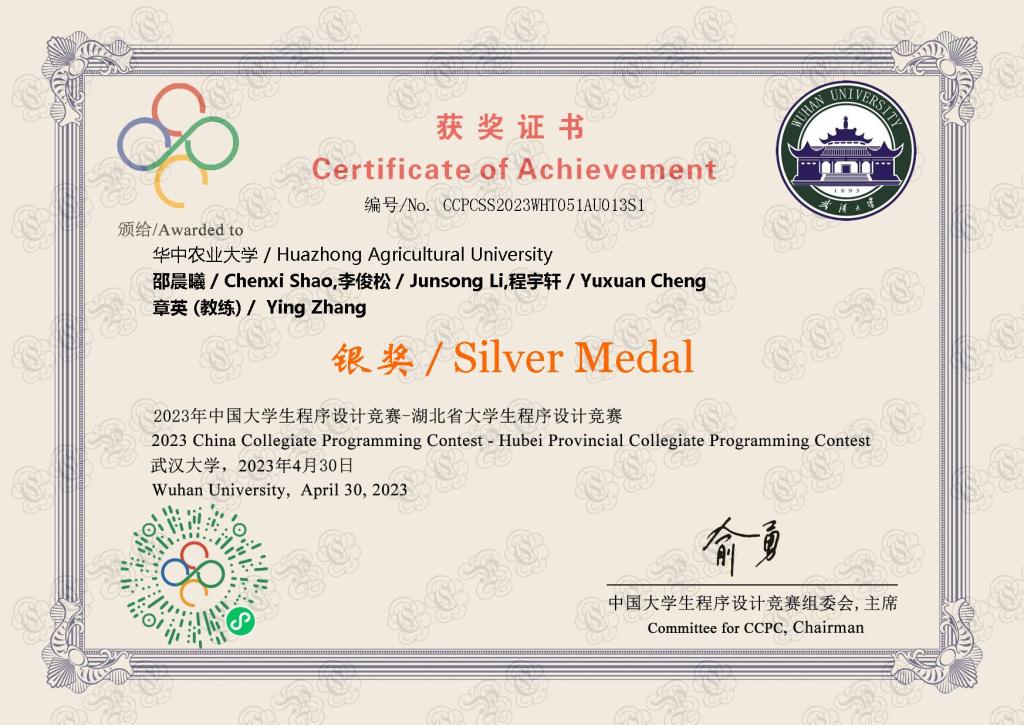 银奖:邵晨曦(21级计科专业)、李俊松(20级大数据专业)、程宇轩(21级工公司自动化专业)