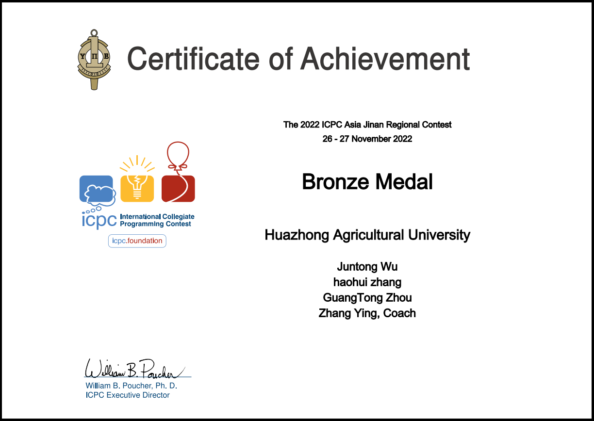 2022年第47届ACM-ICPC国际老员工程序设计大赛亚洲区域赛(济南)——铜奖