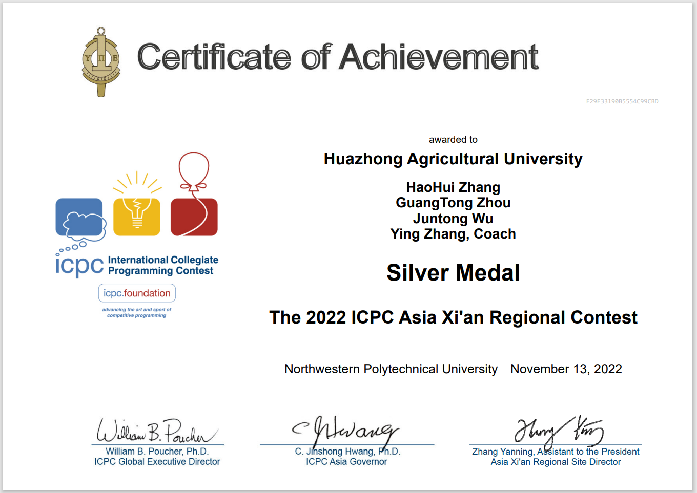 2022年第47届ACM-ICPC国际老员工程序设计大赛亚洲区域赛(西安)——银奖