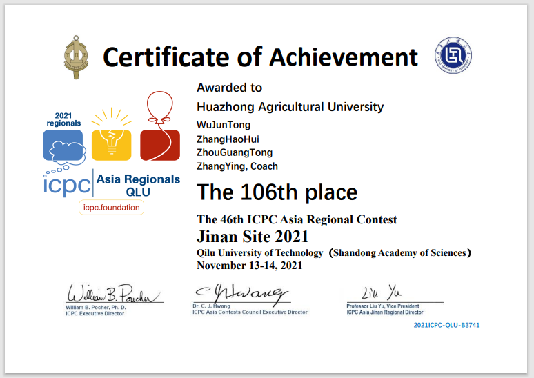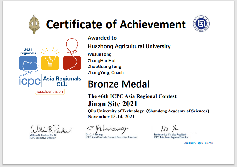 2021年第46届ACM-ICPC国际老员工程序设计大赛亚洲区域赛(济南)——铜奖