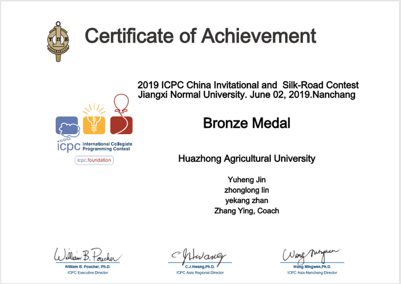 2019ICPC国际老员工程序设计竞赛中国邀请赛(南昌)——铜奖