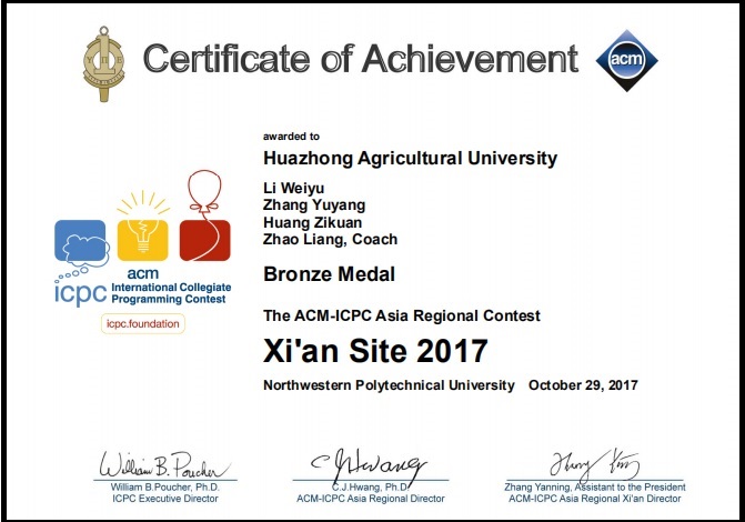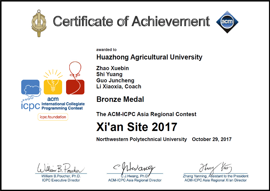 2017年ACM国际老员工程序设计竞赛亚洲区域赛西安站——铜奖