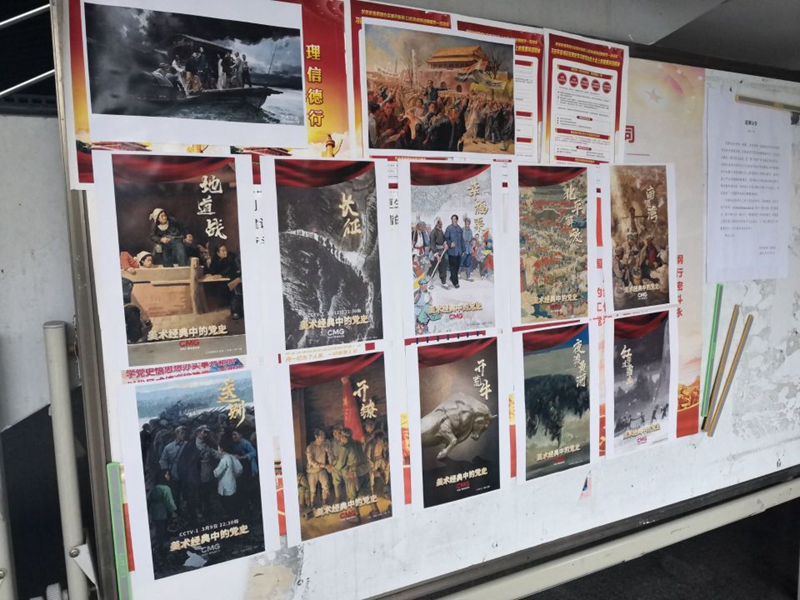 4月27日下午,“美术经典中的党史”主题图片展览在逸夫楼C座1楼大厅公告栏展出。