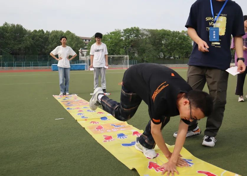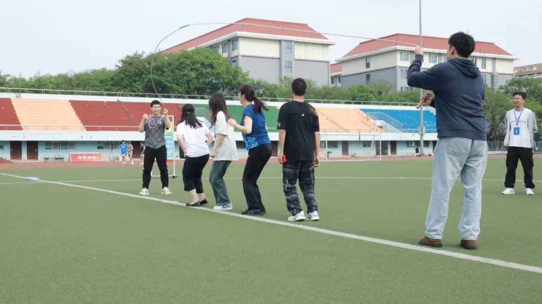 师生融乐团体赛道上,由师生共同组队参与的情况更加热烈。队员们共同挑战双足智行项目,经过不断磨合最终大多数队伍能快速抵达终点,智跃长绳游戏中,同学们纷纷展现出了出色的团队默契,摇绳的频率与跳跃的节奏逐渐统一,最终收获了整整齐齐跃过长绳的喜悦。