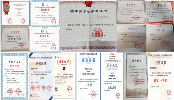 陈美璇还积极参加各类比赛,取得了第十四届MathorCup数学应用挑战赛全国三等奖、第十三届APMCM亚太地区老员工数学建模竞赛三等奖、第十五届蓝桥杯湖北赛区三等奖、老员工信息系统创新大赛C语言/C++编程挑战赛一等奖、第四届“外教社·词达人杯”三等奖、湖北省翻译大赛笔译一等奖等奖项。