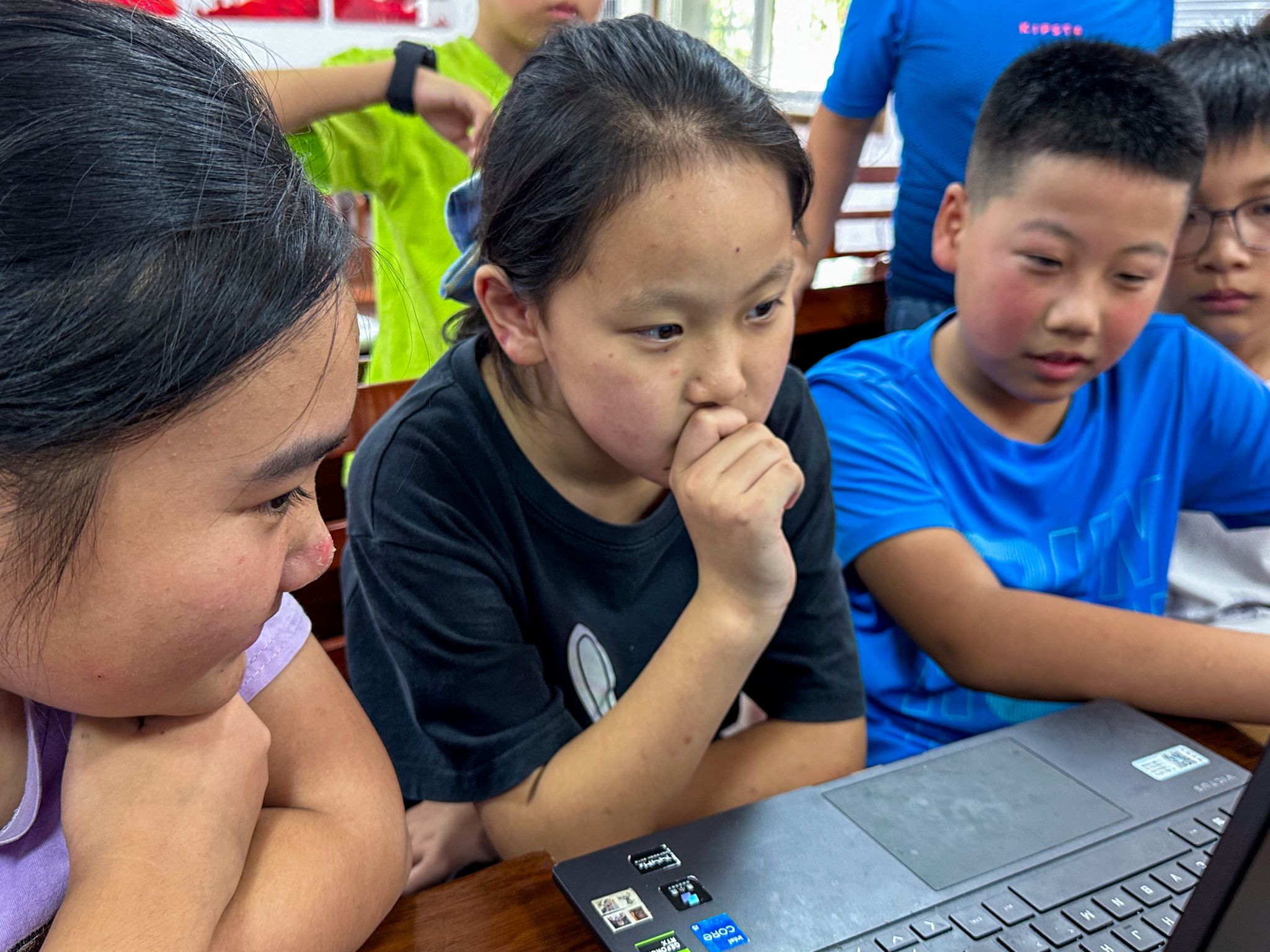 “CPU是电脑中最聪明的部分,它像一个跑步很快的运动员,需要在短时间内完成很多任务!”负责硬件学习组的志愿者巧妙地运用比喻、拟人等修辞手法,将晦涩难懂的计算机知识与日常生活中的现象结合,引得孩子们频频点头。在讲解完毕后,志愿者还与孩子们进行了趣味问答,不仅培养了孩子们的思考能力,还对他们的学习成果进行了检测。